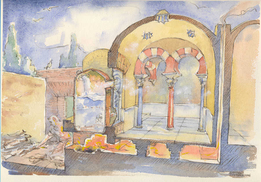 - Dibujo en acuarela de los Baños Califales del Campo para el Museo de los Mártires de Córdoba.